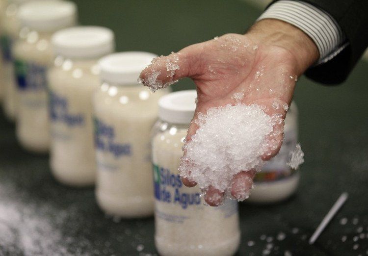 Một hạt solid rain có thể hấp thụ và giữ một lượng nước lớn gấp 500 lần thể tích của nó. Tinh thể giống với hạt đường trắng này là sản phẩm nghiên cứu của kỹ sư hóa học người Mexico Sergio Jésus Rico Velasco.